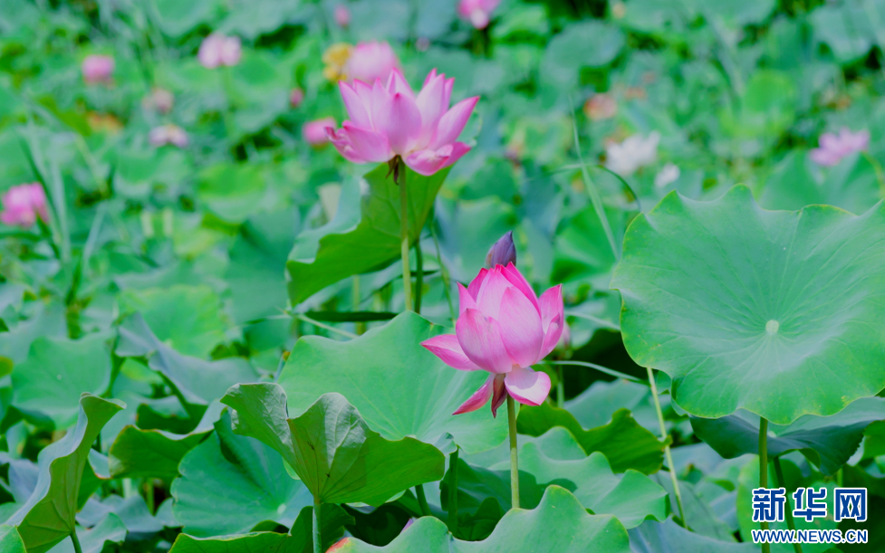 亭亭玉立的荷花在夏日的骄阳里竞相盛开。