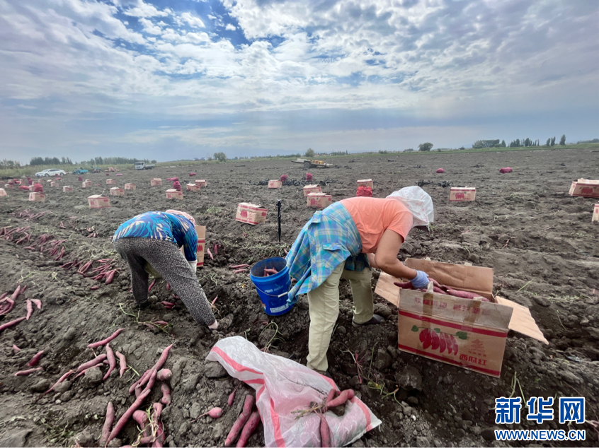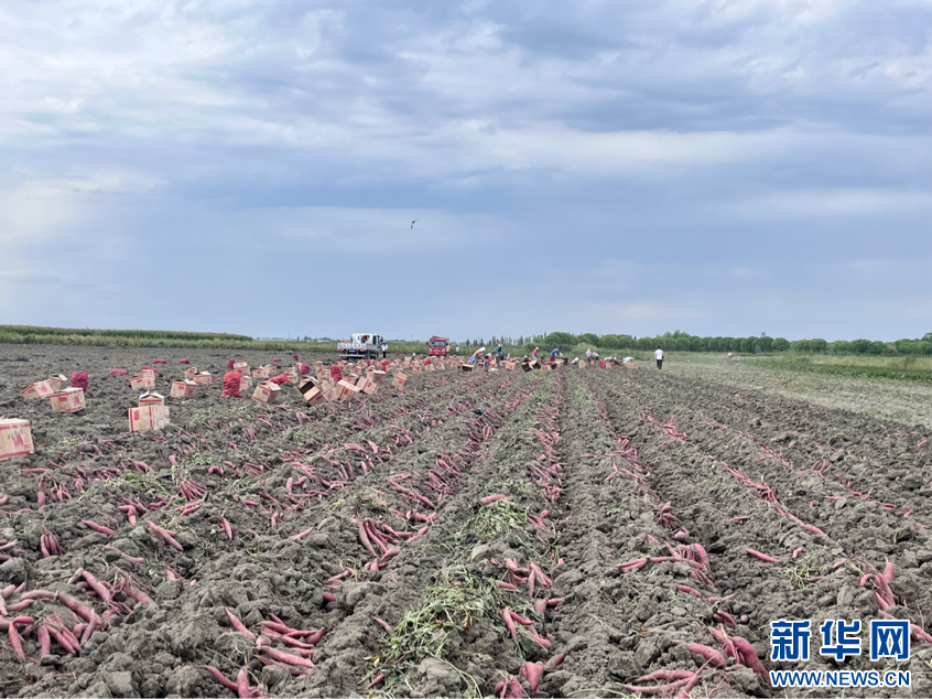 近日,乌鲁木齐高新区(新市区)青格达湖乡“富硒西瓜红”红薯迎来丰收季。