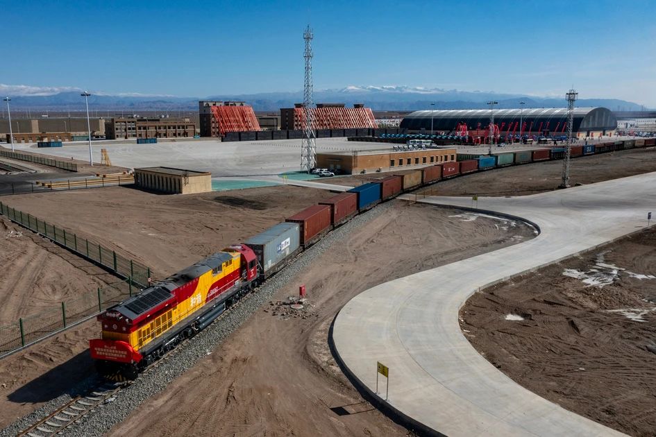 中亚班列缓缓驶离城北物流港物流枢纽多式联运中心站台。融媒体中心记者 普拉提摄