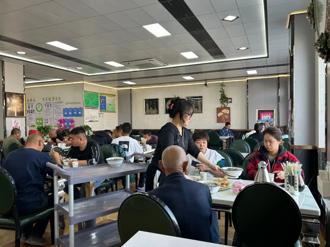 今年52岁的马骁自小跟着父亲学习做杂烩汤,1992年开始接手父亲的生意,到现在已有30多年。2019年,精河县投入6400余万元实施五台街区重建项目,先后完成了65套商品房、80套灾后重建和安居富民房工程,并实施了供排水、道路硬化、绿化、亮化等配套设施建设。现在,五台街区主干道宽阔笔直,两端均与奎屯至赛里木湖高等级公路连接。马骁在好政策的支持下也有了一间300余平方米的店面,可同时容纳150人就餐,店里的员工也发展到了7个人。