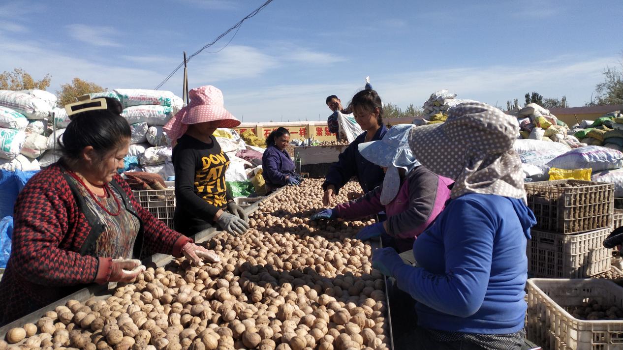穗缘农副产品农民专业合作社是乌帕尔镇农民库尔班妮萨·吾甫尔与丈夫阿布力克穆·麦麦提明在“访惠聚”工作队、村“两委”和广州援疆工作队的支持下,于2019年创办,是一家集收购、加工、销售为一体的合作社。合作社以“农户+合作社”的发展模式,对核桃进行收购以及初加工,拓宽村民销售渠道,解决了不少农民农产品销售难的问题。