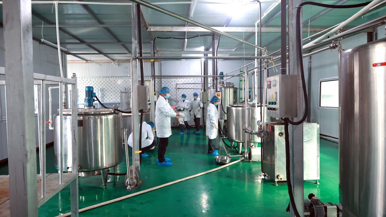 12月15日,在乌什县帅骆驼有限公司乳制品生产车间,机械轰鸣,工人们正在有序作业,空气中弥漫着浓浓的奶香,新鲜的牛奶经过过滤、高温加热、奶皮分离、发酵、冷藏等多道工序,一杯杯美味的酸奶就走出了生产线。乌什县帅骆驼有限公司是一家专业从事核桃精深加工、乳制品生产的企业,通过引进先进的生产设备和科学的生产工艺,同时,与当地多家养殖合作社和家庭养殖大户达成鲜牛奶供应协议,不仅带动了当地的经济发展,也提高了农牧民的收入水平。