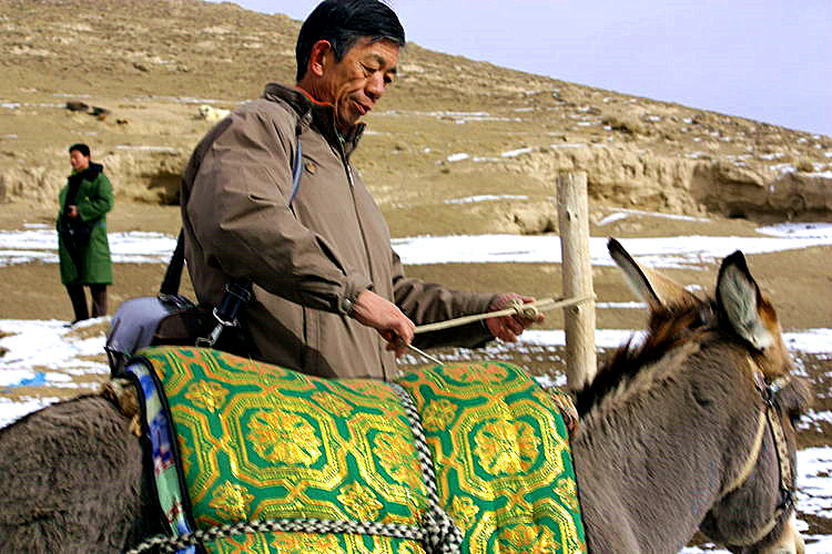 二连有100多个放牧点,每半个月,姜万富就要去放牧点巡诊一次,一次一般要一星期左右,长则十天半个月。去巡诊时,他总要带上药箱、驴子和马褡子,也因此得名——“驴背上的医生”。巡诊的路很荒凉,他总是一个人独来独往,有时候太寂寞了,就对着山谷大吼几嗓子。