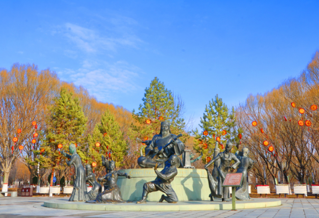 3月24日10时05分,雨后的博湖县百信休闲公园天空湛蓝。王陆斌 摄