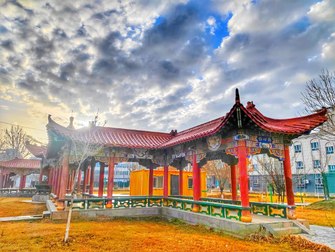 3月24日9时07分,新疆博湖县博湖镇上空朝霞满天。王陆斌 摄