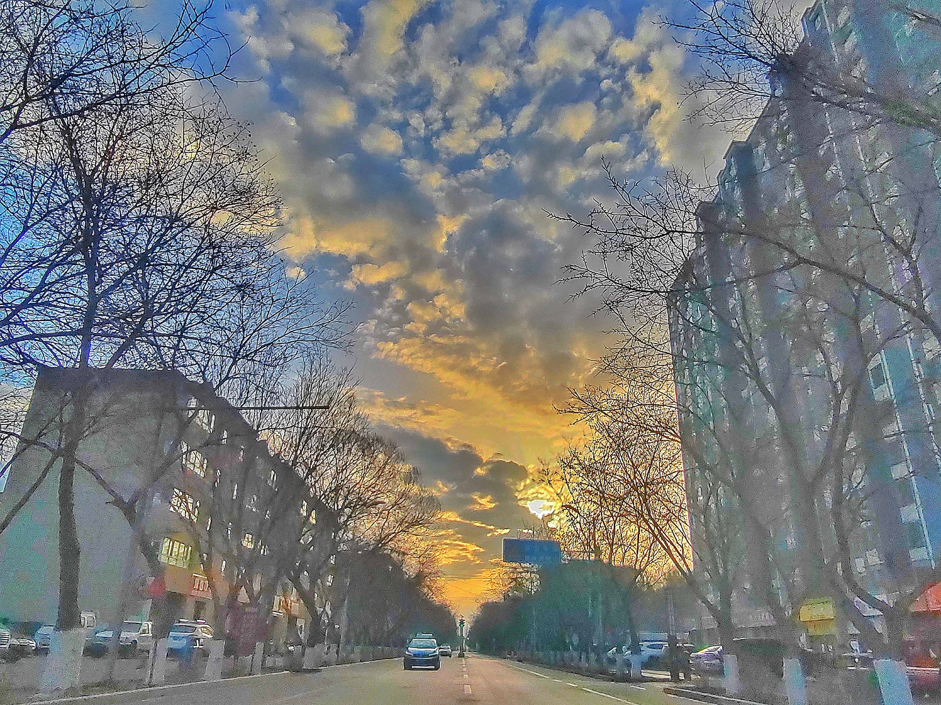 3月24日凌晨夜间,春雨如丝,轻轻地洒落人间,本年度首场降雨滋润着新疆巴州博湖县大地和树木;清晨,博湖县城镇居民小区、道路、公园、开都河附近天空云层变幻,云朵如同一位变幻莫测的魔术师,时而轻盈如丝,时而厚重如棉,不断演绎着它的神奇与美丽,为人们献上一场光影视觉盛宴。(通讯员 王陆斌)