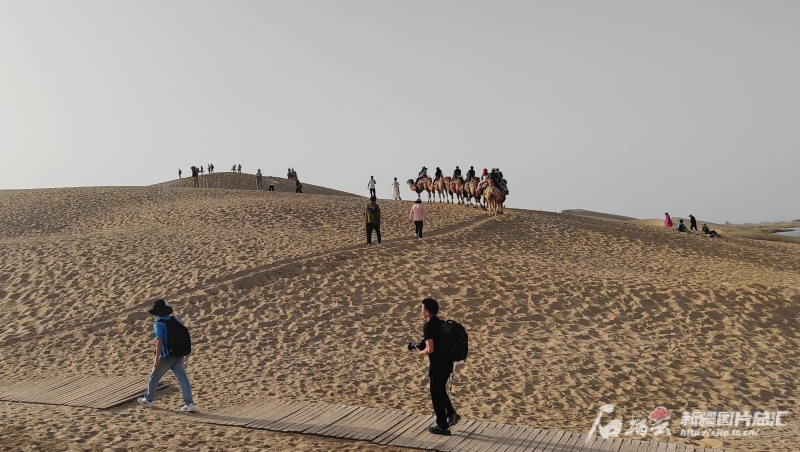 神女湖的四周,无垠的黄色沙海在阳光下闪耀着金色的光芒,不远处的骆驼骑乘处排了长长的队伍,驼队在沙漠中悠悠前行。今年72岁的游客孙昱翔和老伴第一次来新疆旅游,骑在骆驼上,随着骆驼的步伐起伏,欣赏到沙漠中独特的风景,这为他的新疆之旅增添了无限的乐趣和惊喜。
