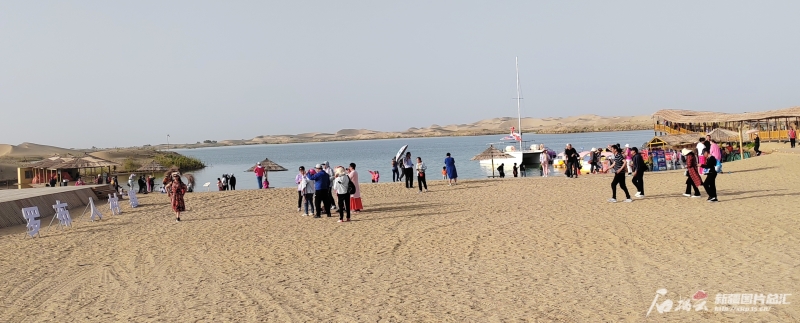 乘坐景区区间车来到罗布人村寨神女湖景点,看到眼前波光粼粼、碧水荡漾的湖面,远望沙海绵延,广西游客许凌宇震撼不已:“这个湖就像浩瀚沙海中的一颗璀璨明珠,四周都有大大小小的沙丘,沙海碧湖相连,真是一种奇妙的视觉享受。”