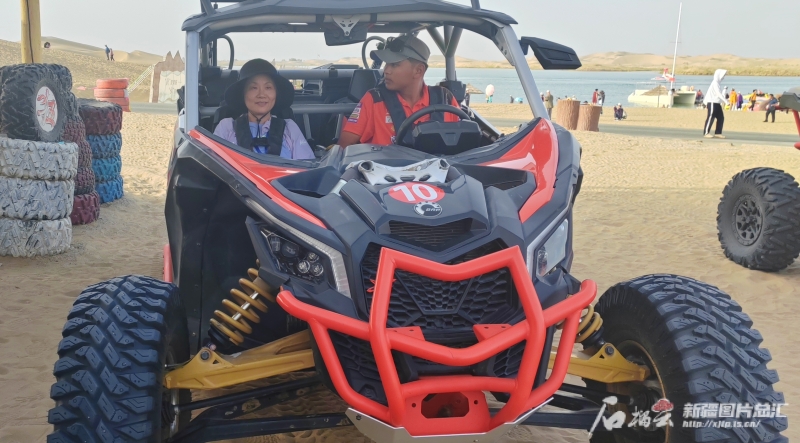 另一侧的沙漠体验越野营,几辆沙漠越野车停靠在营地前,来自深圳的游客翟晓黎坐在副驾驶室,驾驶员肉斯坦木·阿布都勒帮她做好防护措施后,便开动越野车向前方的沙丘冲去。“越野车在沙海中穿行,如乘风破浪一样,比坐过山车还要惊险刺激,太震撼、太好玩了!”经历了沙漠腹地的惊险冲浪后,她忍不住感慨。