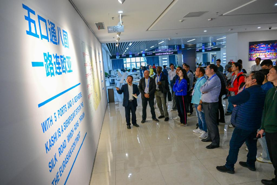 10月15日,与会嘉宾代表在位于新疆喀什的中国(新疆)自由贸易试验区喀什片区参观。
