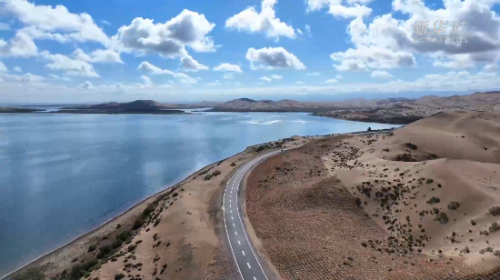 金秋时节,新疆环博斯腾湖公路迎来了它最为迷人的季节。蓝天白云映衬下,湖泊如镜,沙漠与绿洲交相辉映,构成了一幅令人心旷神怡的画面。