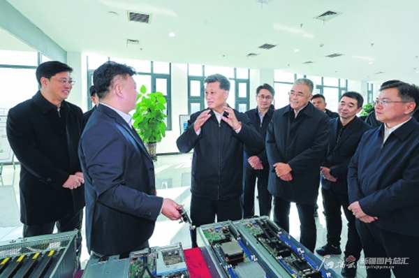 11月18日,自治区党委书记马兴瑞在克拉玛依市调研。这是马兴瑞来到位于克拉玛依市云计算产业园区的碳和网络科技有限公司,详细了解企业参与云计算产业发展情况。 石榴云/新疆日报记者崔志坚 摄