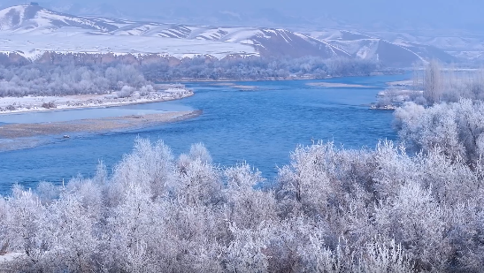 12月中旬,新疆伊犁哈萨克自治州伊犁河流域巩留段,树木银装素裹,河水湛蓝如镜,每一株树皆被雾凇满满覆盖,玉树琼花,晶莹剔亮,成群的野鸭在河水中悠然栖息、觅食,为冬日的伊犁河增添了不少生机与活力。(赵健 张磊 陈浩然)