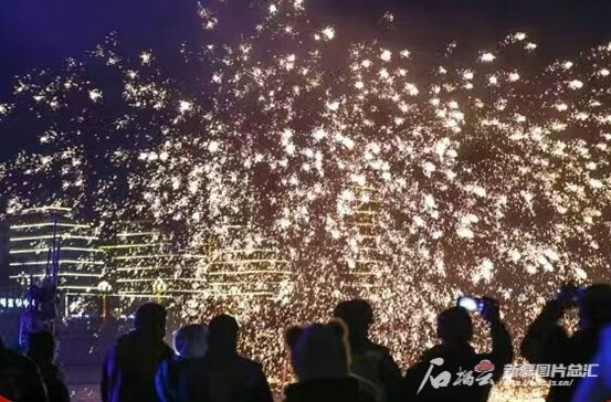 库车市南湖公园开展非遗打铁花表演,吸引不少游客前来观看。周佩兰 摄