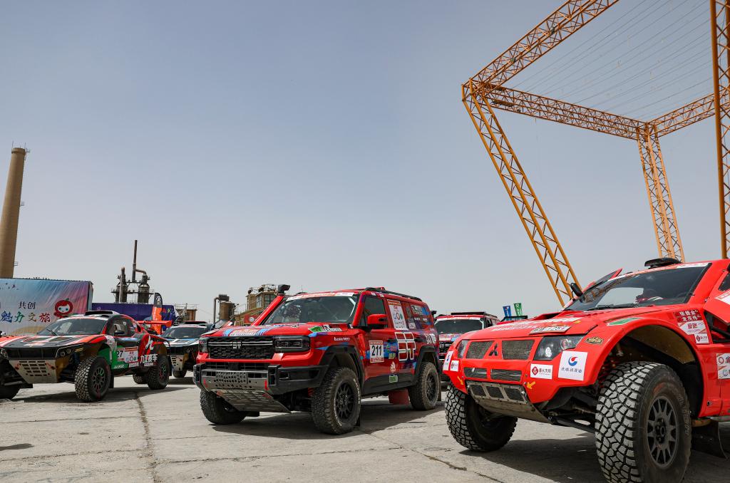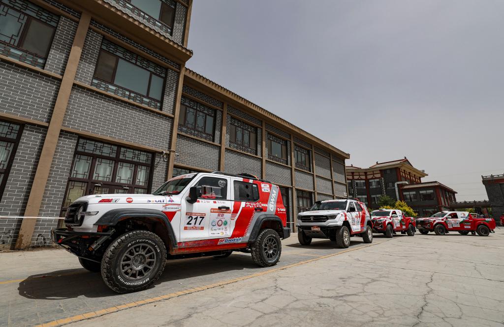 5月20日,长城坦克Hi4车队的两辆新能源组赛车(左一、左二)在发车仪式上。
