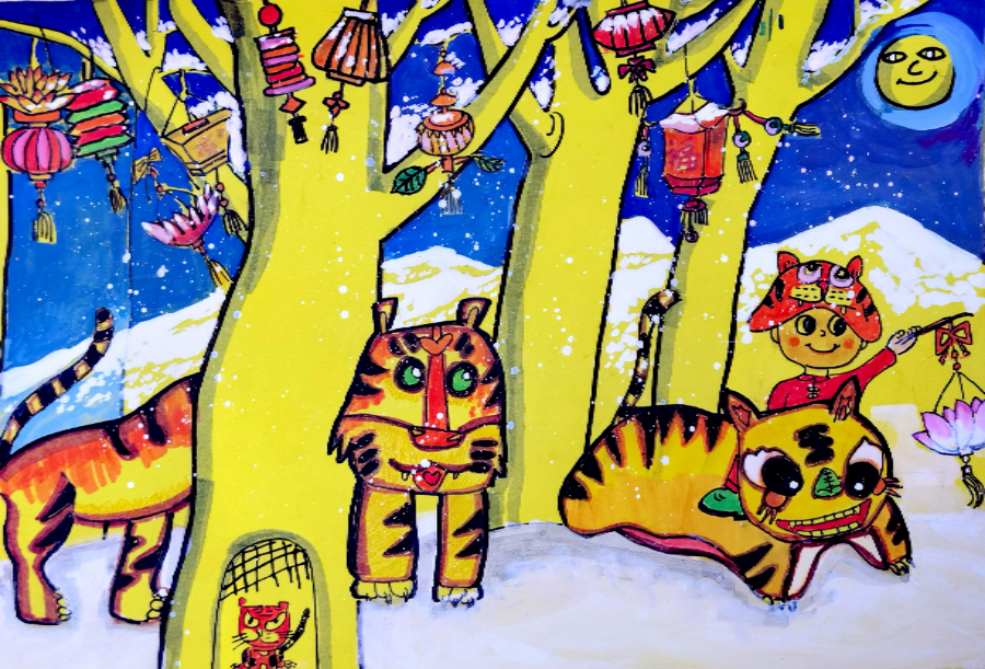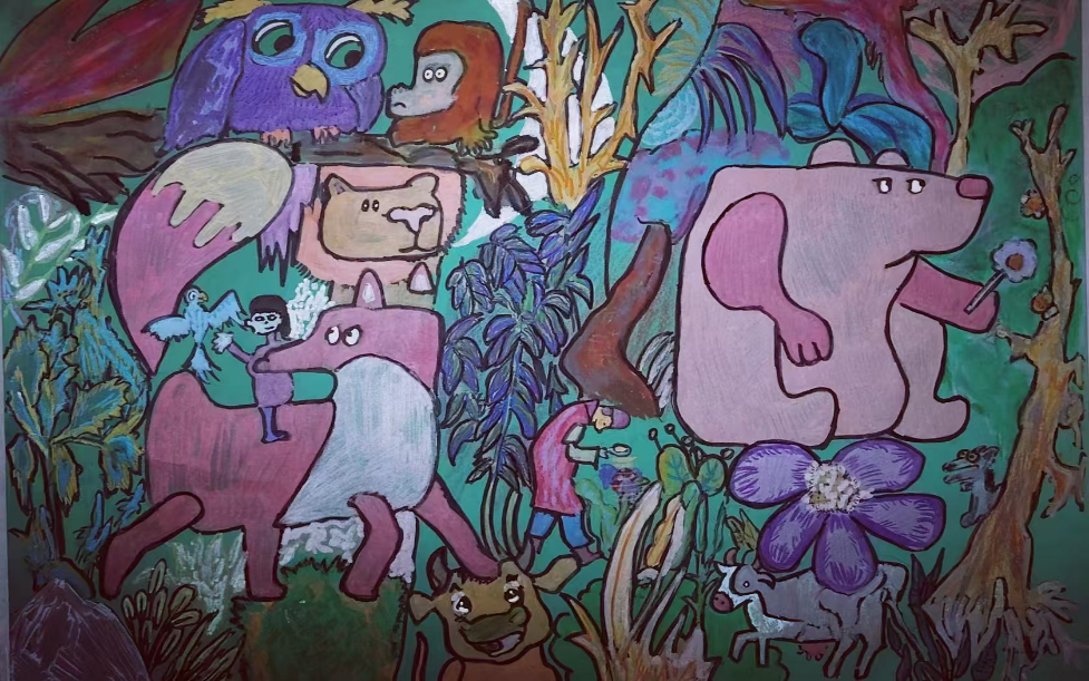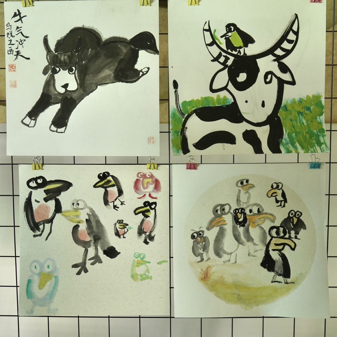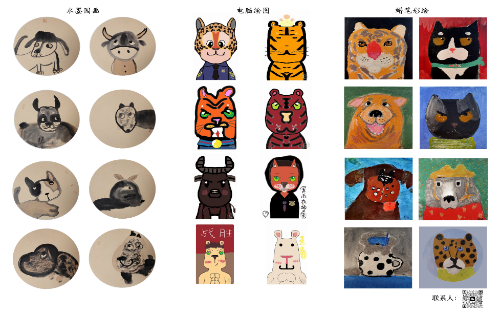 作为学校生态养殖园的"小园长",马悦之将对小动物的深切观察转化为笔下的艺术语言。她以孩童特有的敏锐捕捉生命的灵动,更以超越年龄的技法赋予动物拟人化的情感,构建出一个纯真与野性共舞的童话宇宙。