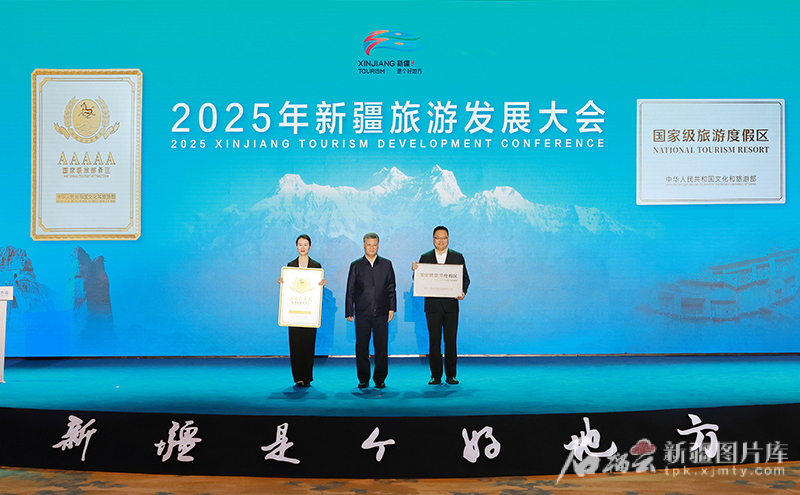 5月25日,自治区和兵团在阿克苏地区库车市联合召开2025年新疆旅游发展大会。自治区党委书记、兵团党委第一书记、第一政委马兴瑞出席会议,并为2024年获评国家5A级旅游景区的天山托木尔景区、获评国家级旅游度假区的青格达湖旅游度假区授牌。