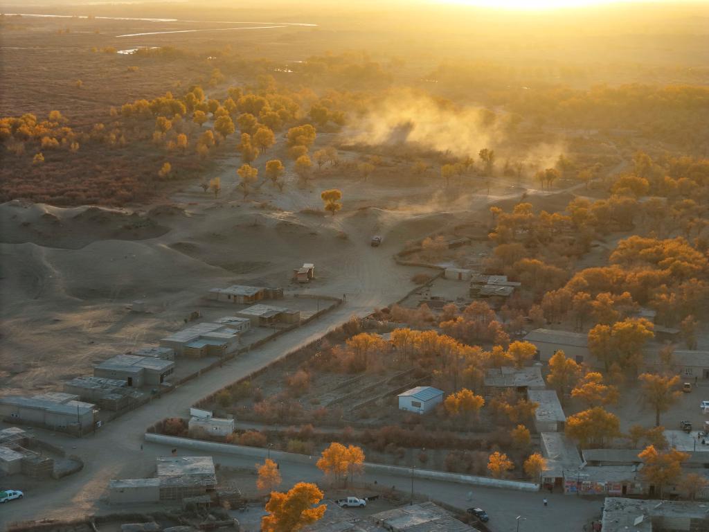 在塔克拉玛干沙漠北缘的绿洲里