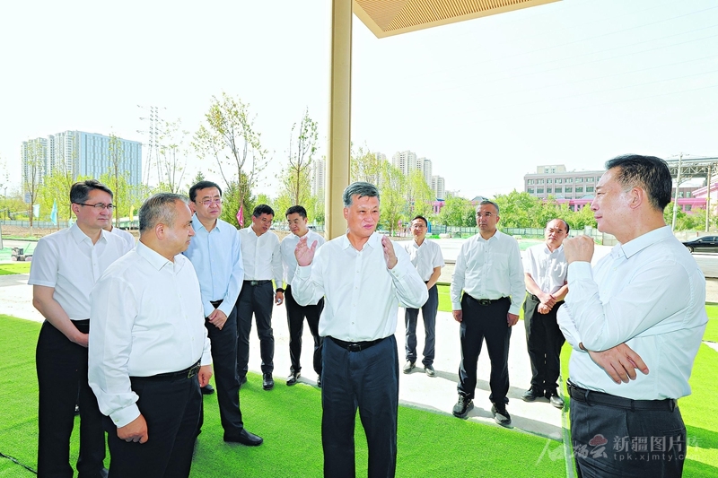 6月15日,自治区党委书记马兴瑞、自治区主席艾尔肯·吐尼亚孜在新疆国际医疗中心调研。这是马兴瑞、艾尔肯·吐尼亚孜来到建设现场,察看整体情况,详细听取一期项目推进和二期项目规划情况介绍。 □石榴云/新疆日报记者崔志坚摄