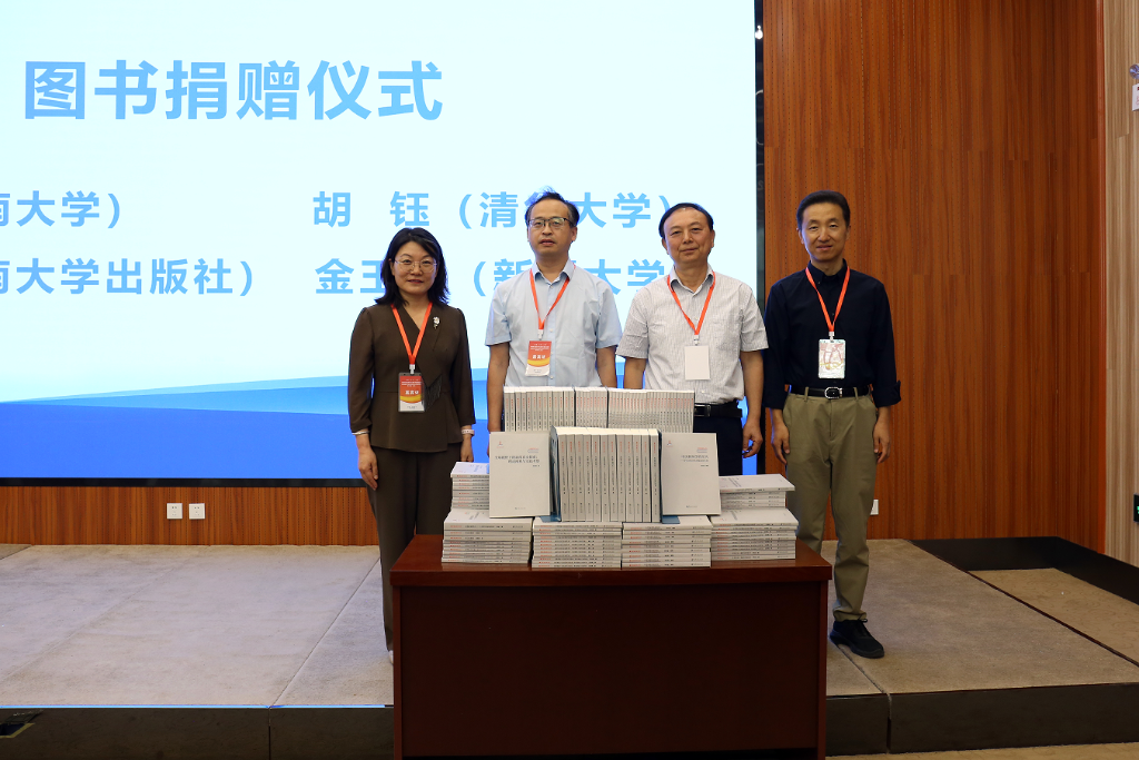 活动开幕式举行了图书捐赠仪式,河南大学出版社给新疆大学和中国新闻史学会中国特色新闻学专业委员会捐赠最新出版的《中国新闻学丛书》15套(每套22本),该丛书是中国特色新闻学学科体系、学术体系和话语体系创新发展的最新理论成果。
