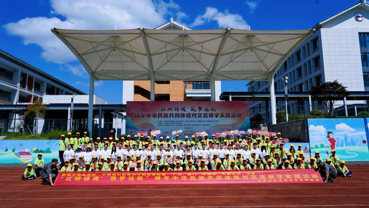 7月的闽西,暑意渐浓,福建上杭古田全国研学营地内却洋溢着比阳光更热烈的气息,来自新疆呼图壁县的百名少先队员,与来自西藏、广州、厦门、龙岩的共316名中小学生并肩而立,一场主题为“红研铸魂 筑梦远航”铸牢中华民族共同体意识结对交流研学实践活动此启程。这是福建援疆龙岩分指挥部连续三年推动呼图壁县青少年研学实践的生动延续与创新,更是首次跨越千里,与四省五地各族学生共同探寻红色根脉、体验多元文化的首次齐聚。从让呼图壁牧区孩子走出大山看世界,到架起跨区域文化交融的桥梁,援疆力量正以研学为笔,在青少年心中描绘出民族团结一家亲的绚丽图景。