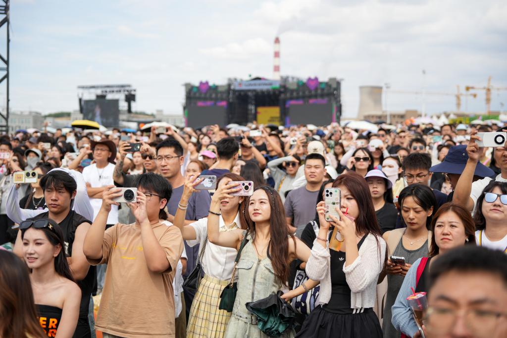 7月12日,在2025新疆超级草莓音乐节现场,观众与演员互动。新华社记者 徐宏岩 摄