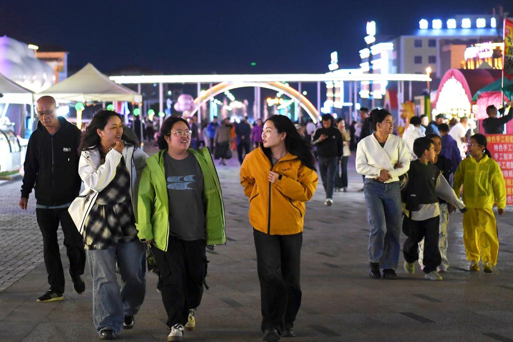 7月17日,人们在改造后的昭苏县天马旅游街区逛街。新华社记者 谢秀栋 摄