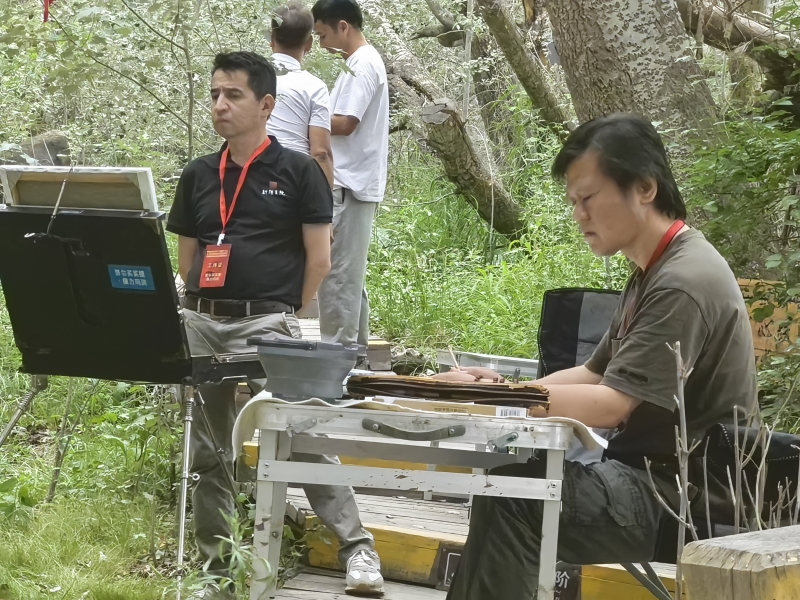 自治区美术书法“石榴籽”文艺小分队在温宿县天山神木园景区写生。资料图
