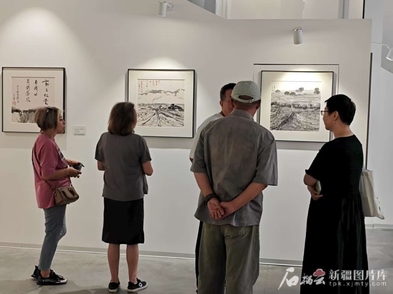 展览现场气氛热烈,观众与嘉宾积极互动。鲁迅文学奖获得者、浙江传媒学院教授沈苇在观展后评价:“韩子勇先生的水墨创作,是将多年在文学领域的深厚积淀与敏锐感悟,成功融入水墨艺术的一次诗意转译。”本次展览还同步举办了艺术沙龙活动,韩子勇、沈苇、新疆文联名誉主席刘宾等嘉宾围绕新疆文化的传承与创新等话题进行了深入对话。新疆油画学会主席张雷震表示,此次展览与沙龙搭建了文学与美术跨界交流的平台,有助于促进新疆题材艺术创作的深度探索。