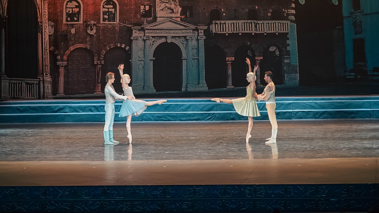 舞剧《罗密欧与朱丽叶》的剧情改编自莎士比亚的同名戏剧。该剧完整复刻了原著中家族争斗、舞会邂逅、私定终身、生死诀别等跌宕情节,通过充满情感张力的舞蹈语言,赋予这部世界级爱情悲剧震撼人心的艺术表达。舞剧以芭蕾独有的诗意肢体语言,生动诠释了罗密欧与朱丽叶超越时代桎梏的纯粹爱情。从两大家族剑拔弩张的激烈冲突,到月下互诉衷肠的缠绵双人舞,直至最终殉情的悲怆结局,演员们凭借卓越的表演技巧与非凡的舞台感染力,精准刻画了角色复杂的情感脉络,引发观众由衷赞叹,现场掌声不息。