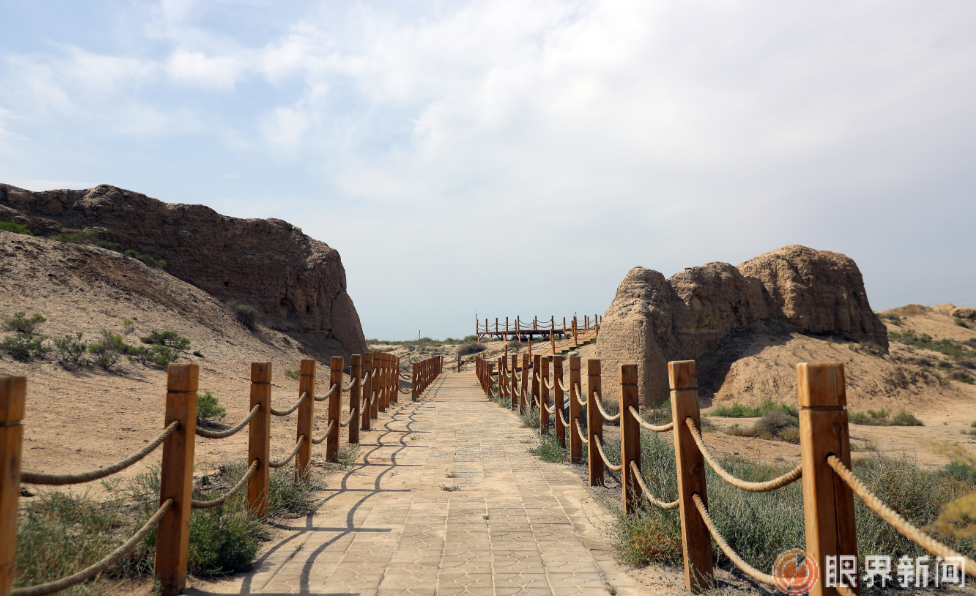 乌拉泊古城内的观光步道。记者王畅彤摄