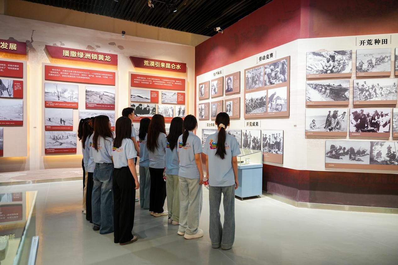 展馆通过数百件实物史料、近千幅图文资料,搭配实景复原,全景展现沙海老兵从行军解放到屯垦戍边的壮阔历程,看着一件件充满历史痕迹的展品,实践团成员们深受触动。团队成员赵吉恺感慨道:“作为新时代的青年,我们要大力弘扬兵团精神、胡杨精神和老兵精神,忠实履行新时代职责使命,接过历史的接力棒,在乡村振兴的战场上贡献青春力量!”