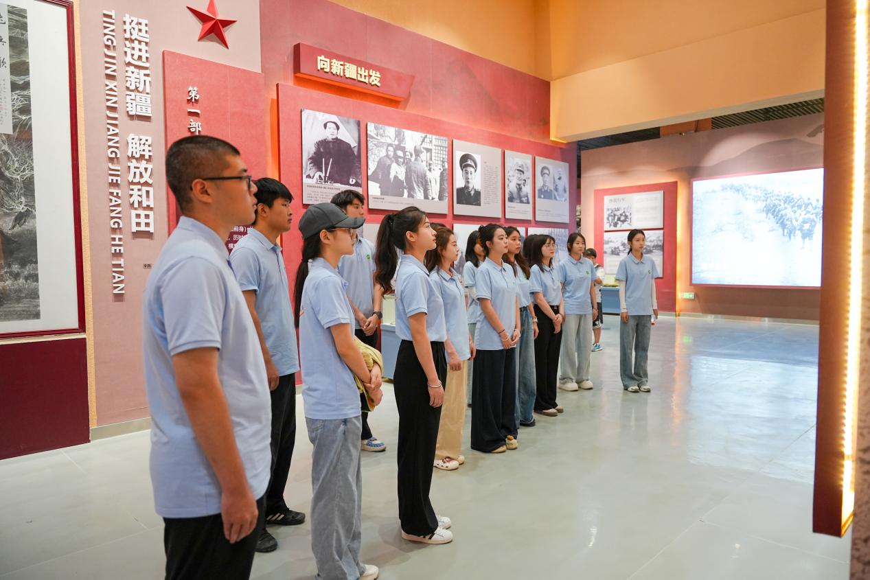 7月11日,石河子大学党委学生工作部“青春逐光,‘乡’约振兴”社会实践团走进新疆生产建设兵团第十四师四十七团沙海老兵纪念馆,倾听老兵故事,深入学习沙海老兵“扎根新疆、热爱新疆、屯垦戍边”的崇高精神,在红色文化中汲取乡村振兴的青春动能。