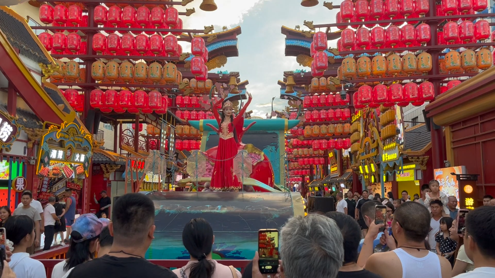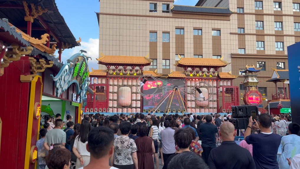 在乌鲁木齐市的天山明月城特色街区,这里汇集了餐饮、休闲娱乐、歌舞演艺等业态,每天都有各类演出活动,在丰富市民游客文化活动的同时,激发消费活力,助力“夜经济”发展。