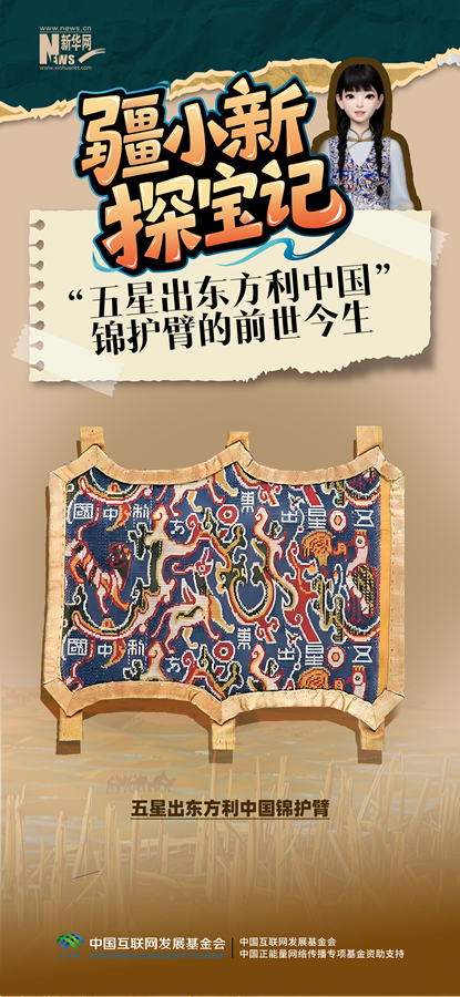 沧海桑田,物换星移。1995年,中日联合考古队深入塔克拉玛干大沙漠,一番寻找探索,让掩于黄沙之下的尼雅遗址重现人间,“五星出东方利中国”锦护臂安然附挂在精绝王子身边的楎椸上,千年光阴拂过,依旧色彩鲜艳。见证着古代西域与汉王朝在政治、经济、文化方面密切交往交融,用一针一线诉说着不曾改变的认同与信仰。