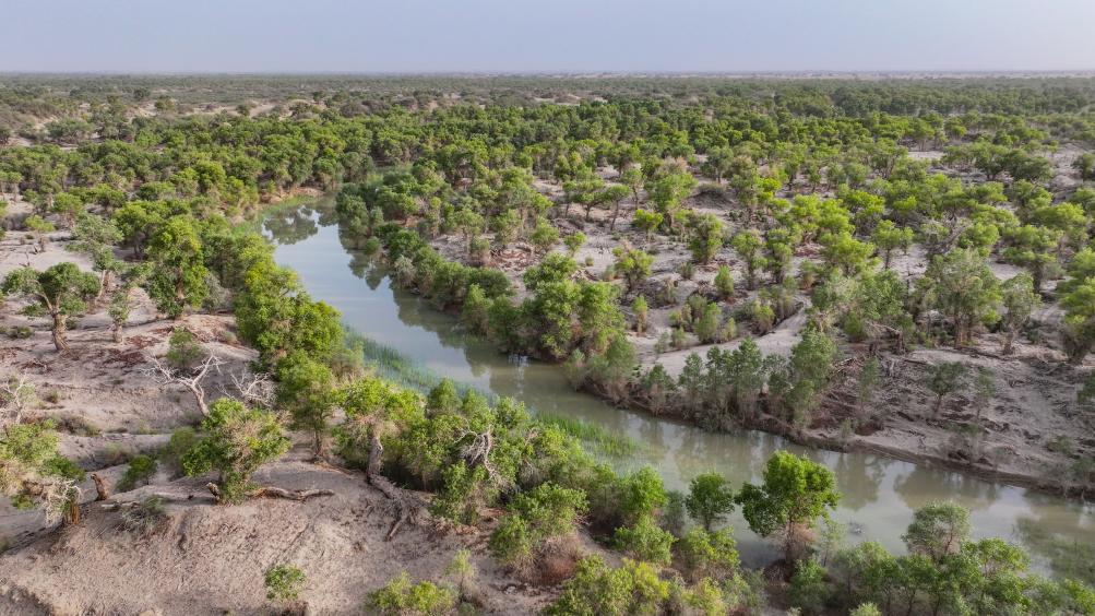 8月6日,在新疆巴音郭楞蒙古自治州尉犁县境内拍摄的胡杨林(无人机照片)。