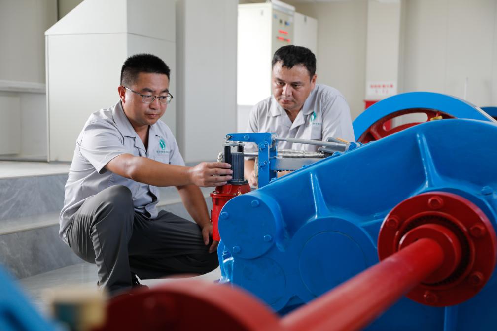 8月6日,新疆塔里木河流域干流管理局下游管理处大西海子水库管理站工作人员对启闭机制动器(刹车)进行检查。