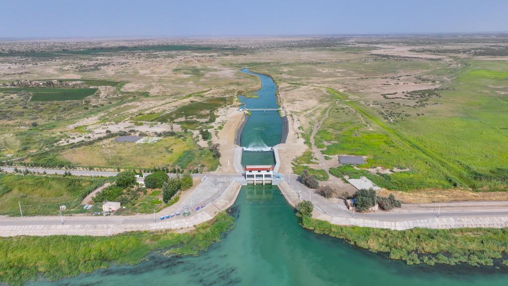 8月5日,新疆塔里木河在尉犁县境内大西海子水库启动第26次生态输水第二阶段输水工作。