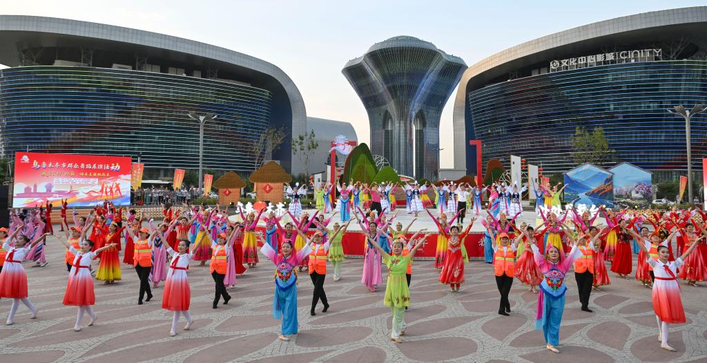 乌鲁木齐市达坂城区舞蹈队在“我们‘村’的舞”乌鲁木齐市群众舞蹈展演活动上表演舞蹈(7月28日摄)。