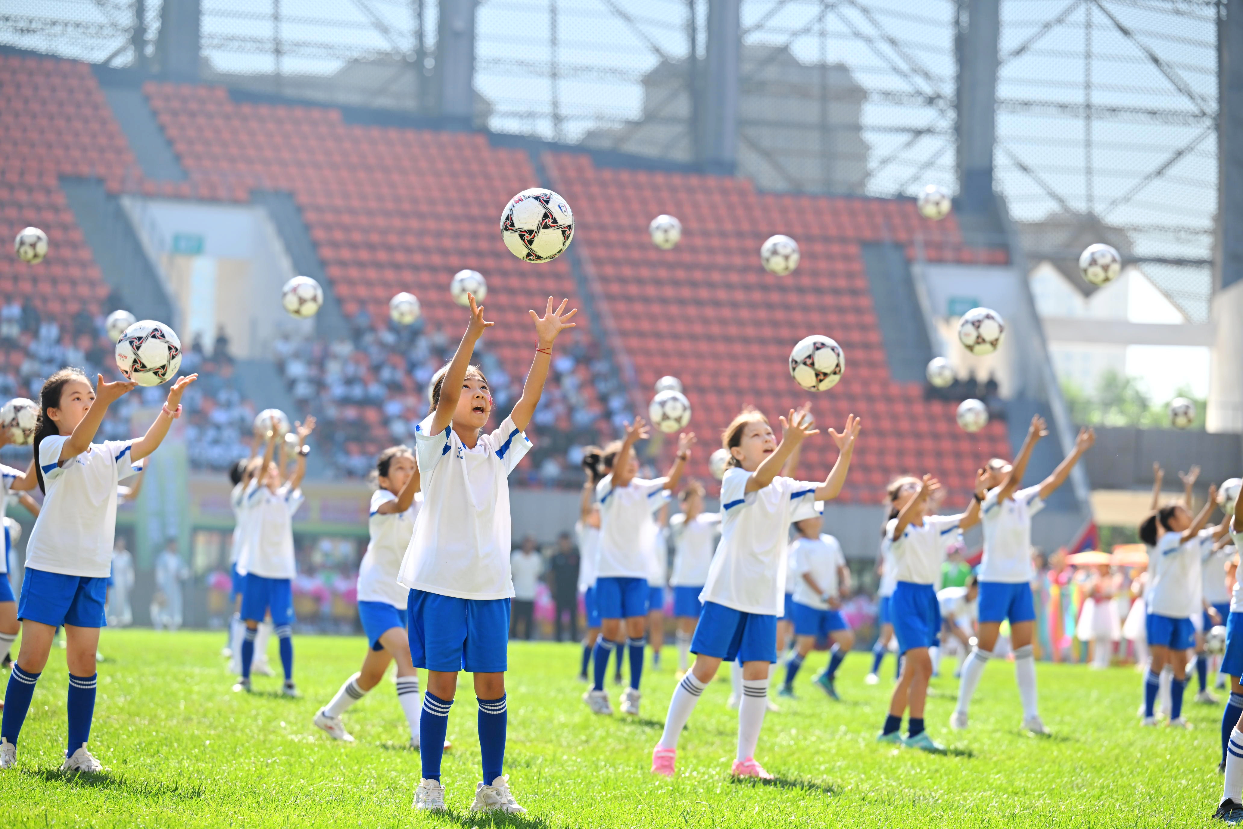 8月12日,“祖国情·中华行”新疆首届校园“援疆杯”中学生(初中组)足球联赛开幕式现场。何龙 摄