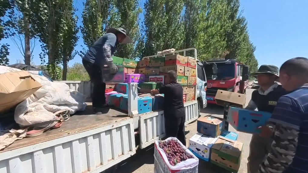 立秋过后,新疆昌吉回族自治州玛纳斯县六户地镇杨家道村千亩葡萄丰收。果农忙着采摘、装箱、销售,葡萄园里一派丰收景象。