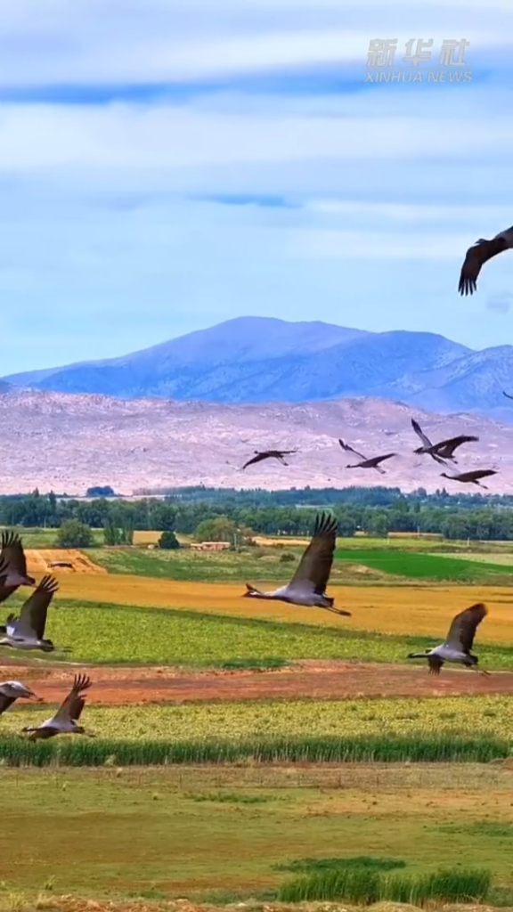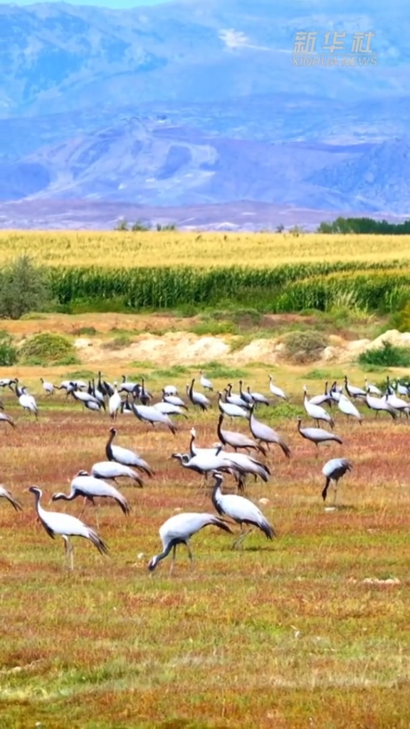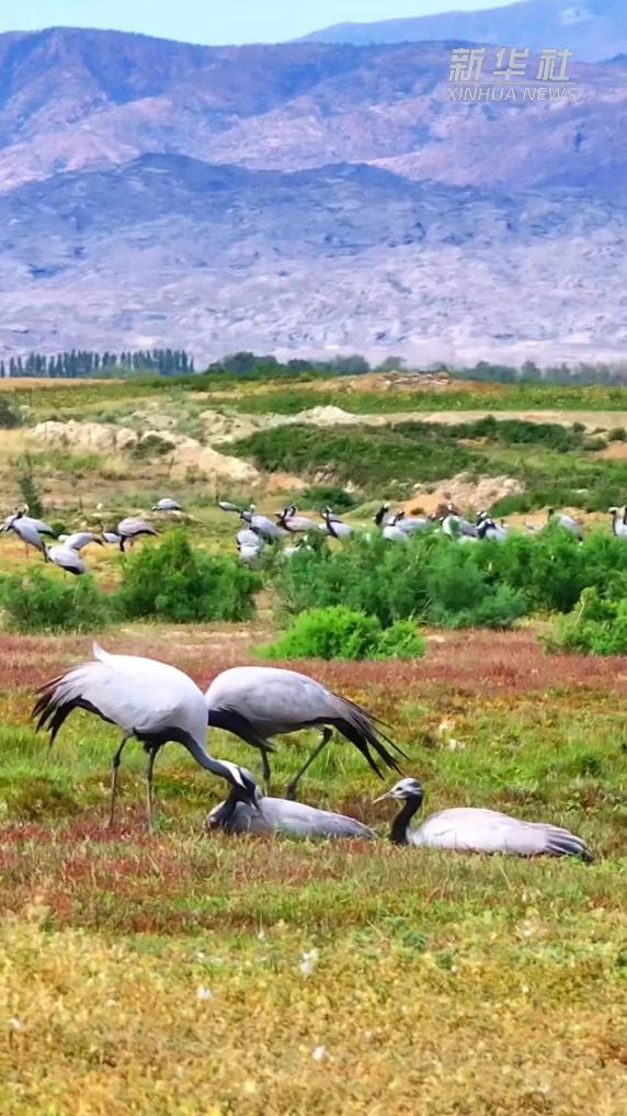 近年来,阿勒泰市持续推进生态保护工作,良好的自然环境为蓑羽鹤等野生动物提供宜居的栖息地。