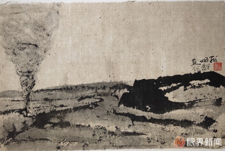 韩子勇中国画作品《孤烟直》。记者赵剑尘 摄