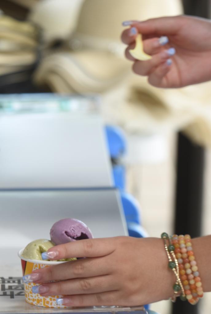“冰淇淋口感很绵密,能吃到新鲜的果肉,是那种恰到好处的甜。”福建游客郑星龙赞不绝口,作为冰淇淋爱好者,他对手工冰淇淋浓郁的奶香与传统工艺有着独特的情怀。