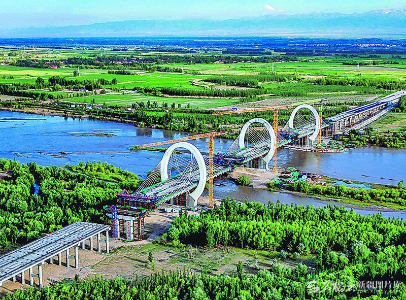 伊犁河三桥建设现场(5月21日无人机摄)。蔡增乐 摄
