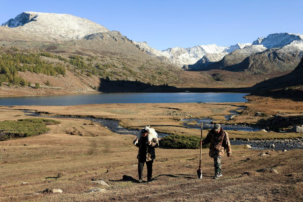 9月6日,库尔木图边境派出辅警恰勒恒·肯杰汗(左)背着受伤的羊,助力当地牧民牲畜转场。新华社发(叶尔江摄)