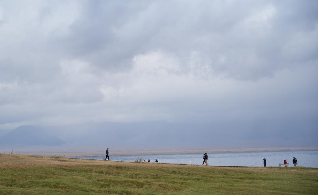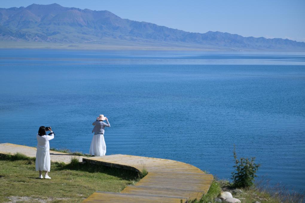 9月10日,游客在赛里木湖畔游玩。新华社记者 张浩波 摄