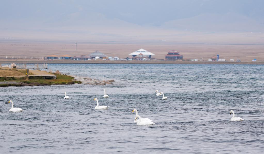 9月10日,天鹅在赛里木湖游弋。新华社记者 张浩波 摄