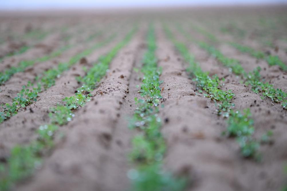 这是在新疆和田地区策勒县4万亩苜蓿种植基地拍摄的苜蓿苗(9月9日摄)。新华社记者 丁磊 摄