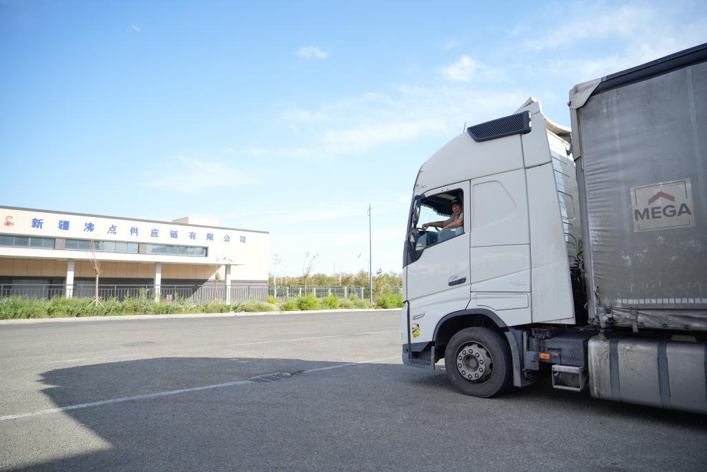 9月11日,在新疆阿拉山口跨境电商产业园,来自哈萨克斯坦的货车司机萨亚特在等待货物装车。(新华社记者张浩波摄)